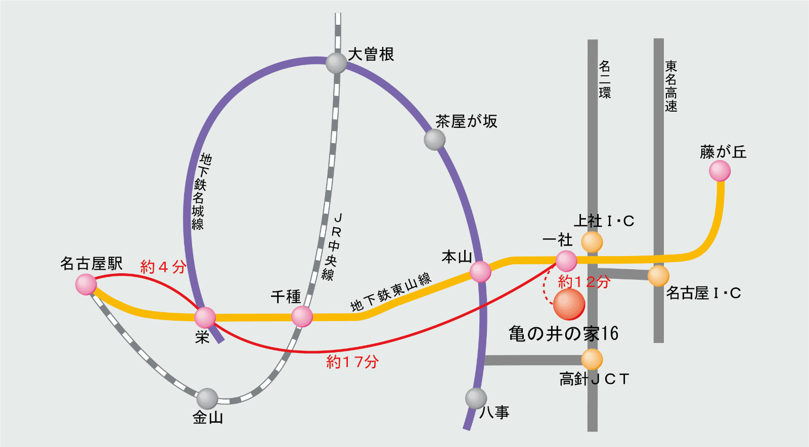| 地下鉄東山線「一社」駅 | 約930m(徒歩約12分) |